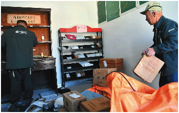 ▲每天一大早,小焦就来单位分拣当天投递的包裹。