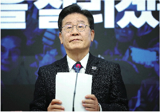 2021年,李在明迎来“主场时刻”。他在当年7月宣布竞选总统,并在10月当选共同民主党总统候选人。之后他辞去京畿道知事一职,专心备战总统选举。2022年竞选总统败北后,李在明在同年8月再度当选共同民主党党首。