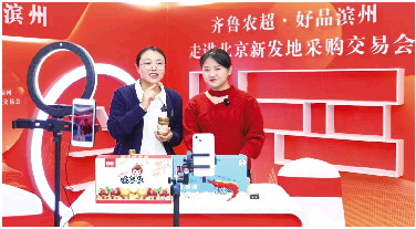 主播在“齐鲁农超·好品滨州”专属直播间,推荐滨州好品。