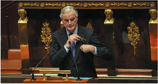 4日,在法国巴黎,法国总理巴尼耶参加国民议会对政府不信任动议投票表决前的辩论。 新华社发