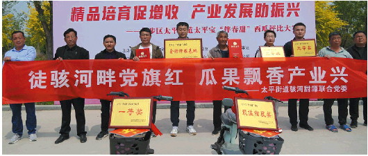 瓜菜品牌提档升级。重点发展园区建设,高标准建设瓜菜示范大棚160余亩,进一步提高精品小西瓜种植面积。举办“伴春甜”精品“瓜王”大赛,进一步促进种植户交流学习,并在央视媒体进行宣传,全面提升“太平宝”品牌知名度。