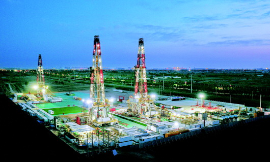 在民丰区块丰页2号台,3台钻机正在有序施工。
