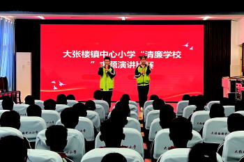 嘉祥县大张楼镇中心小学举行“清廉校园”主题演讲。