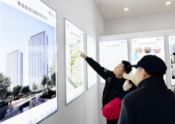 市民正在长沙路46号查看户型图并咨询保障房配售情况。