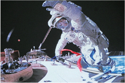 12月17日在北京航天飞行控制中心拍摄的航天员宋令东在空间站组合体舱外工作间隙挥手致意的画面。 新华社发