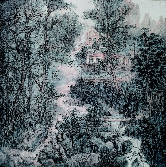 国画《山村新貌》 新时代现代风第四届全国现代工笔画大展入展作品