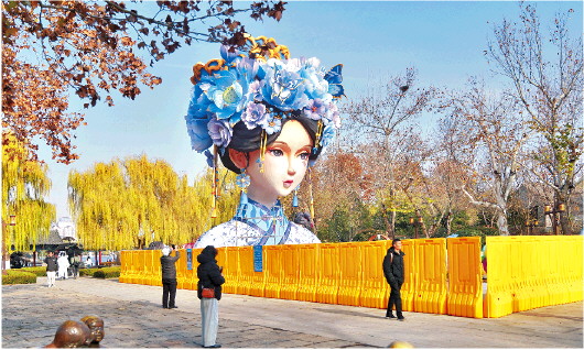 近日,“夏雨荷”造型灯组出现在济南大明湖畔正谊广场,头“戴”簪花的“夏雨荷”是即将在济南市第44届趵突泉迎春花灯会亮相的灯组之一——“湖畔雨荷”,这也是历年来花灯会体量最大的单体造型灯组。“夏雨荷”主灯高12米,可以眨眼,将首次实现与游客“互动”,充满科技感、实景感。本届花灯会全面升级,以“奔涌如曲·泉城追光”为主题,趵突泉景区为主展区,以护城河为串联,开创性地将展区扩至大明湖、五龙潭,分别打造“赶灯季”“烟雨湖”“漫时光”三大主题区域。 王贝艺 王帮栋 摄影报道