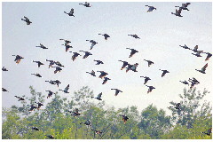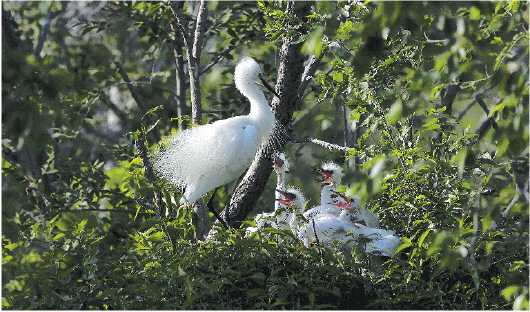 为了追寻湿地精灵,用摄影助力生态保护,几年来,我作为一个摄影人,经常背着相机来往于马颊河林场湿地。寒来暑往,我奔波在芦苇荡中,坚持、等待、守候,观测拍摄了200多种鸟类10万多张照片。它们既有常住“居民”,又有迁徙鸟类,既有普通鸟类,又有被称为“鸟中熊猫”的震旦雅雀。每年春夏之交,成千上万的白鹭、池鹭、夜鹭、牛背鹭等鸟儿都会回来寻伴搭窝、筑巢孵蛋。