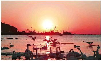 荣成烟墩角村天鹅湖美景。中国铁路官博