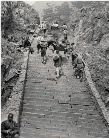 旧时登泰山,却远没有今天这样方便,一般人只能靠双脚艰苦攀爬,但一些有身份的人登山可用山轿代步。长期以来,山轿便成为登泰山的主要交通工具,而轿夫便是抬轿上山的主力军。