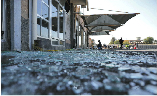 2024年12月27日,也门首都萨那国际机场一处受损建筑旁的地面布满玻璃碎片。 新华/路透