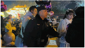 负责此区域执勤的是济南历下公安分局大明湖派出所副所长、四级高级警长李海波。他介绍,该区域当晚分配了约30名警力,大家提前进行了培训,当晚6点就已全员到岗。由于百花洲多是游客,在此巡逻时,民警不仅要保护市民安全,还需兼职志愿者。若有来问路的游客,询问哪里有吃饭的地方、卫生间在哪里,李海波都会详细解答。