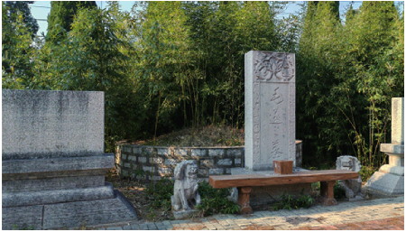 去时正是晌午。我循着导航把车开进一条胡同,远远望见墓园内株株高大的柏树森然耸立,白墙青瓦的院墙遮住柏树的下方,青白相错,在这安静的冬日更显庄严肃穆。车拐到园门前的毛遂路停下,见方形墓园,园门朝西,园门两侧有墓园介绍牌和文保碑。进园门,左侧有两棵高大的水杉,其余是柏树。柏树如林,毛遂墓就掩映林中。我行走在干净的墓园小道上,鸟鸣起伏,静寂无人,唯有株株柏树如卫士默然站立,守卫着一代名士。