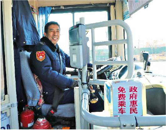 乘车免费,服务不打折,在聊城城区,公交车驾驶员用微笑迎接乘客。 谢晓丽 摄
