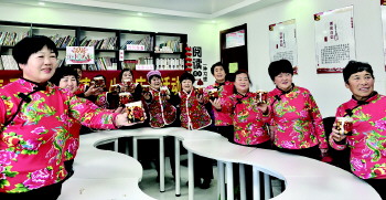 但热闹不止于此。在镇党群服务中心一楼大厅里,义诊活动同样人头攒动,量血压、测血糖,免费体检给周边的村民们送来了看得见的健康。转角拾阶上二楼,刚刚表演完节目的阿姨们穿着花棉袄坐在暖和的屋里里,一边剥蒜一边唠家常,时不时还唱几句自己独创的民间小调,气氛温馨又开怀,蒜和醋的香味儿交织在一起,大家说说笑笑地各自掂着一罐刚腌下去的腊八蒜,很快,它将成为每家年夜饭上的一道美味。