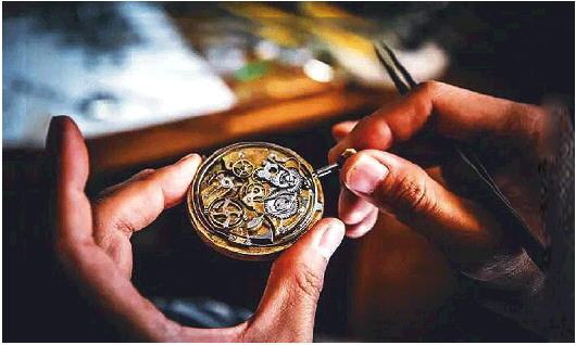 接过父亲的手表,何师傅拧开表盖,用镊子熟练地把表拆开。然后把额上的橡皮筋扯下来,将放大镜嵌在左眼上下眼皮间,细眯右眼,单眼审视表内每一处细节,再用细小的工具轻轻拆解。每一个动作都从容不迫,仿佛在与时间对话,倾听它的故事。很快,父亲的手表焕然一新,一度暂停的时光旋律再次滴答起来……