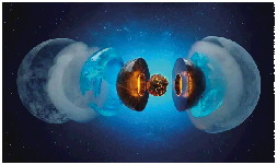 在实验中,研究人员先碾碎位于两块钻石之间的冰块,然后发射激光以进一步增加压力和热量,在接近5000℃的高温和两倍大气压的高压下,他们看到一块超离子水冰形成并融化的证据。