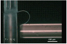 与天然冰相比,这些冰纤维内部结构几乎不存在缺陷,表面也十分光滑。在-70℃条件下,研究人员将其中一根直径4.7微米的冰微纤维,弯曲了大约180°(曲率半径为63微米),这根冰纤维不仅没折断,在撤掉外力之后还能迅速回弹,恢复到之前笔直的形态。