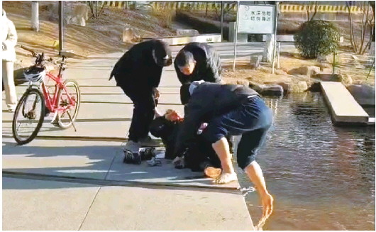 “当时我也没想那么多,就是看到有人倒在水中,我就冲过去了。”1月16日下午3时20分左右,侯成鑫像往常一样骑车走在下班回家途中,路过李村河生态公园时,发现好多人在河边围观。于是,他将自行车停下,走上前去,只见有位老人倒在河中动弹不得,天气寒冷,随时可能出现生命危险。
