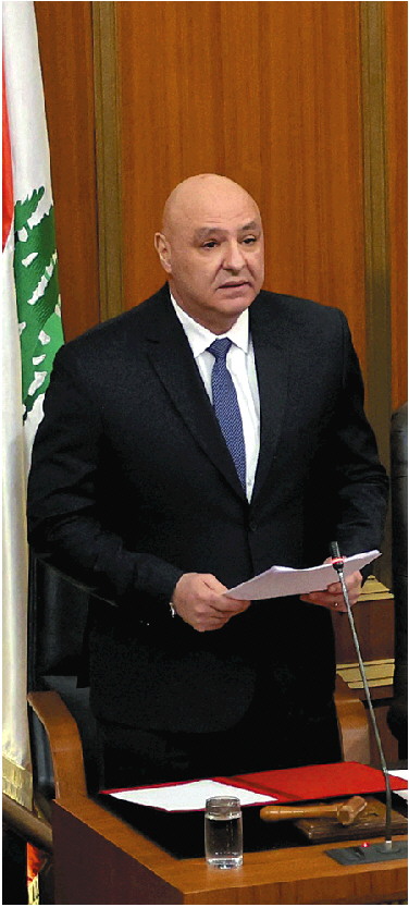 1月9日,约瑟夫·奥恩当选总统后在黎巴嫩议会发表演讲。 新华/法新
