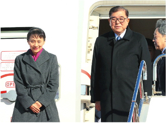 1月9日,在日本东京,日本首相石破茂和夫人石破佳子启程出访马来西亚和印尼。 IC Photo