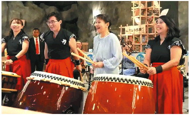 11日,在印尼雅加达,身穿一袭浅色裙装的石破佳子拿起鼓槌,与一个由日本人和印尼人组成的乐团一同敲响太鼓,将现场氛围推向高潮。“音乐有着跨越语言差异、将人与人联结起来的力量……这是我第一次随丈夫访问外国,真是一次非常值得纪念的经历。我希望在场的印尼朋友们能有机会访问日本。”她在现场发表演讲,讲完后抬头一笑,极具亲和力。