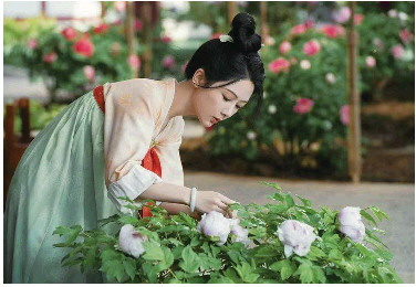 电视剧《国色芳华》中,何惟芳在照料牡丹。