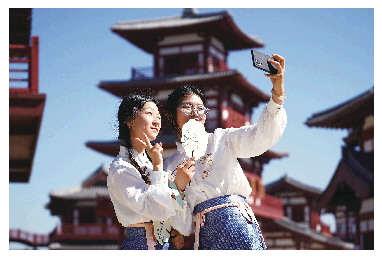 游客在乐陵影视城拍照打卡。