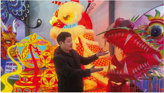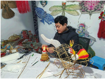 王永训正在制作花灯。