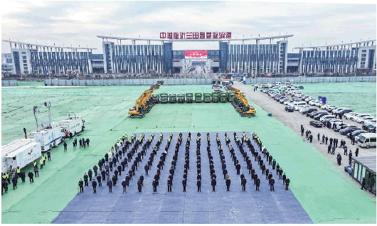 主会场近侧的现代物流城内,每天十余万吨的货物,在逾千辆大货车的车轮转动间,从四面八方汇聚于此,再从这里奔赴天南海北。正如这场“新春第一会”,凝聚起源源不断的拼劲。