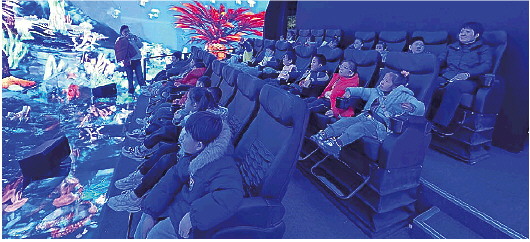 山东美术馆数字艺术空间中的“光境——海底世界”5D动感U幕影院。