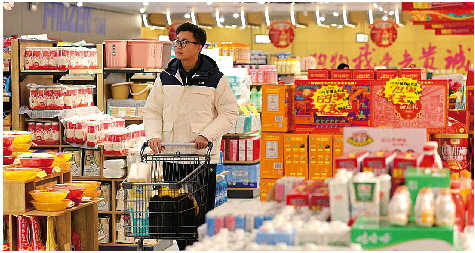 2月9日,消费者在山东省枣庄市一家超市选购商品。 新华社发