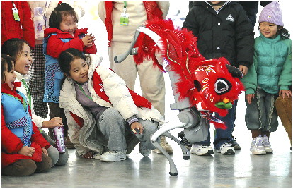 ▲机器狗“舞狮”闹新春。
