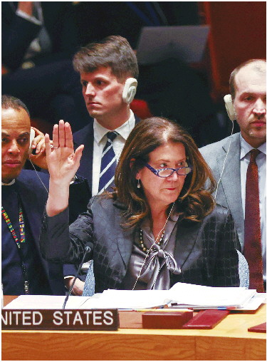 24日,美国代表在联合国就乌克兰局势决议草案投票。 IC photo