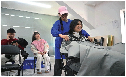 一年下来,有近百名同学来找“程妈妈”理过头发。有的同学在她的影响下,主动来帮忙,成为工作室的志愿者。“有个女生,在我给她理完发一个星期后,特地找到我非要送我一把转椅。”程亚红说,“她说我弯着腰理发太累了,坐在转椅上腰就不疼了。”爱与付出有了回应,程亚红很是感动,感到很治愈。