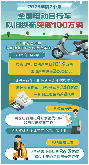 前2个月全国电动自行车以旧换新突破100万辆