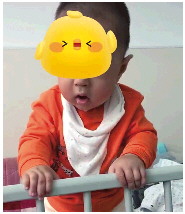 用药不到1个月,淘淘已能独自扶物站立。