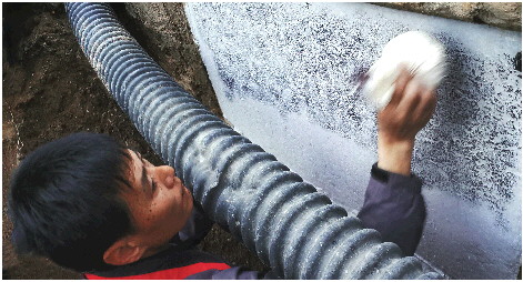 2023年,黄鹏下到华笔池泉池中制作拓片。 左庆摄