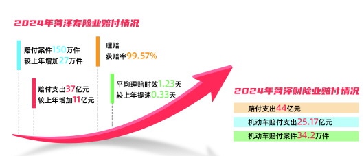 数据见证担当。2024年,菏泽寿险业赔付案件150万件,较上年增加27万件,赔付支出37亿元,较上年增加11亿元,理赔获赔率99.57%,平均理赔时效1.23天,较上年提速0.33天;菏泽财险业赔付支出44亿元,机动车赔付支出25.17亿元,机动车赔付案件34.2万件。