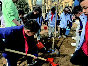 3月12日,青岛启润实验学校师生在校园里开展植树活动。铲土挖坑、扶正树苗、浇水培土……学生在老师和家长志愿者的指导下,分工明确,齐心协力,相互配合,每一个环节都井井有条。此次植树活动,校家社合力种下了桂花、樱花、玉兰、石榴、柿子等不同种类的木苗。同学们还将自己制作的祝福卡挂在树枝上,寓意播种新的希望。 李珍梅 高雅洁 摄影报道