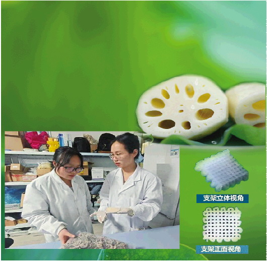 正是这些天然结构,为团队打造仿生材料提供了灵感:将莲藕纤维制成支架,成为骨骼修复的“钢筋骨架”。
