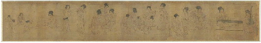五代画家周文矩所画《宫中图》,具体描绘后宫宫女及嫔妃日常生活的热闹景象,生动地展现出了当时休闲时间的活动,体现了宫中女子在不同活动中的缱绻情思,堪称杰作,可是此图粉本长卷,在清朝末年竟被人切割成四段,分别卖给美、英、意三国分藏于四处,一幅完整的作品被分割了。