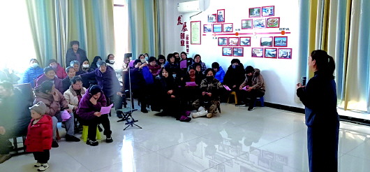在北长山乡敬老院,中国人寿烟台分公司的员工正在为老人们讲解金融知识。