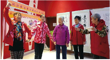 刘翠英在老年大学学过跳舞,是舞蹈骨干;吴哲原来在残联工作过,是演出总监,还教会了大家部分手语、英语;余树芳曾在老年大学当过8年声乐班的班长;田友娟是短视频达人,能拍会剪;李兰擅长主持、唱歌;吴国梁是漫画家,也会跳舞编舞……大家有敲锣打鼓的,有唱歌跳舞的,还有演情景剧的,为了反诈演出使出十八般武艺,越来越多的人被她们吸引,看她们的表演。