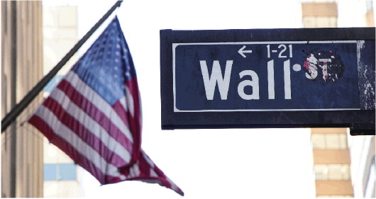 这是3月11日在纽约证券交易所附近拍摄的华尔街路牌。 新华社发