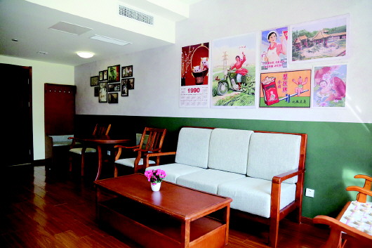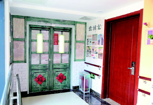 “认知症老人最典型的就是记忆力的减退和认知能力的降低,所以我们在专区的走廊、房门、室内等区域,都设置了更为显著的一些标志。比如搜集了老式缝纫机、煤油灯、邮筒等老物件,贴了复古海报,将这些绘制成老一辈人记忆里的各种典型场景。”王树杰告诉记者,“我们就是希望通过这些富有年代感的小物件,来打开他们的记忆开关,唤醒他们被困住的记忆。我们还为入住的老人提供定制门牌号的服务,将自己住了大半辈子的家的门牌号或者刻在内心里的标志物,放在入住房间的门口,帮助他们找到回家的路。”