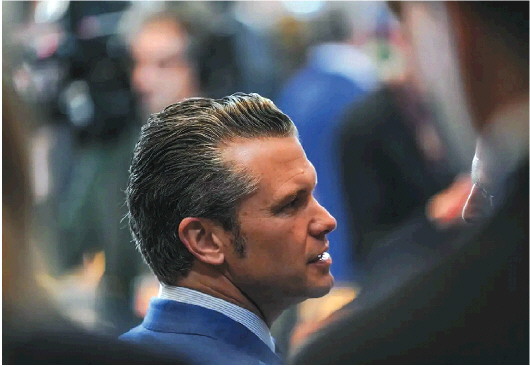 2月13日,美国国防部长赫格塞思在比利时布鲁塞尔。 新华社发