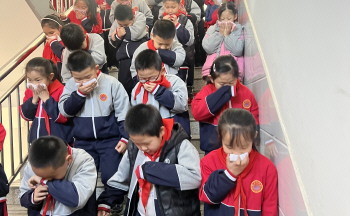 消防演练 为提高学生消防安全意识,增强学生应对突发事件的能力,近日,沂源县振兴路小学举办消防疏散演练活动。 (王宗玲)