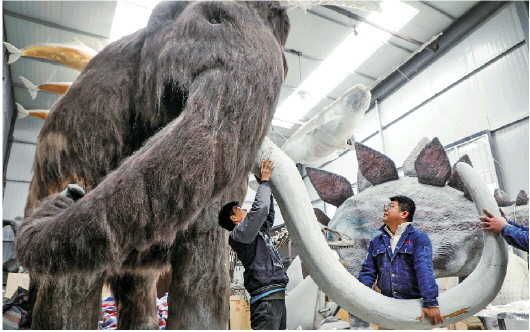 在山东(无棣)海百合环境艺术公司,工人正在制作猛犸象复原模型。这里有着模型复原技术和设备21项国家专利,其生产的模型遍布各地科技馆、博物馆和院校。  无棣县融媒体中心 高士东 摄