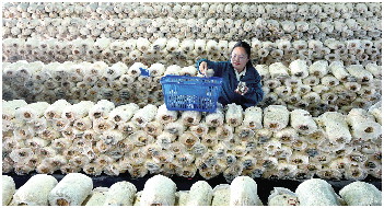 滨城区杨柳雪智慧循环生态农业产业园,员工正在采摘食用菌。该产业园建设33个“鱼菜菌”共生标准化模块,实现绿色有机种养且产量达到传统种养模式的5到10倍。  德州日报 周坤 摄